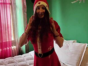 sexy santa unboxes young hairy pussy cum treat