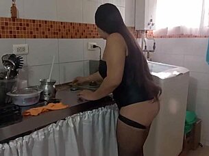 curvy latina bar waitress fucks client for cash at home