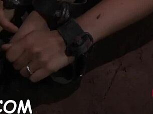 hotty tied upside down vagina thrashed in garage contest