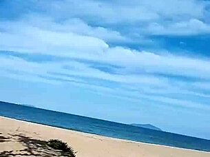Tempting wife beach oral facial cumshot