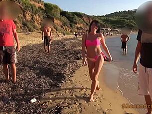 Beach fuck with sexy latina as bathers watch! 😈🏖️