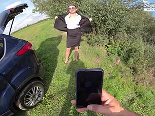 Introducing JJ, the blonde tall milf model with big ass and long legs in backstage interview