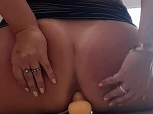 sitting on my huge tanned ass with dildo