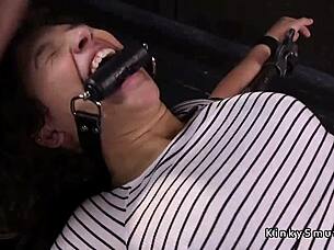 Tall tattooed busty slave gets tied up and tormented in hardcore bdsm session