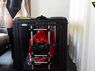 Sidney's ass getting whipped hard while in head-box bondage 😈