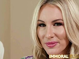 מילף בלונדינית באני מדיסון מציגה ציצים גדולים ונזמזמת חזק
