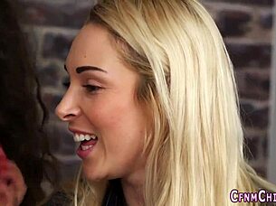 pretty teen sucks cock in cfnm setting