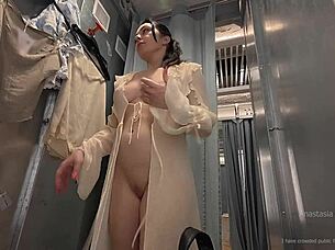 bruneete wife flashes naked in public changing room