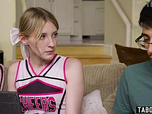 Inocente Latina Cheerleader Sucks Daddy's Cock While Stepmom Away