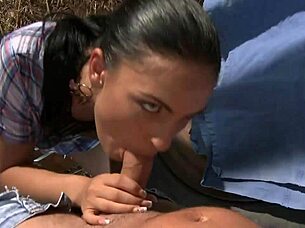 dirty wife enjoys outdoor pussy licking and riding cock during camping adventure