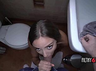 Angelina Castro slobbers on a lucky cock in POV