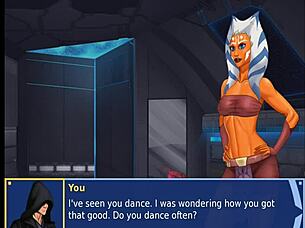 orange trainer dances with tits and ass handjob