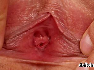 stunning kitten teases tight cunt to explosive climax in close-up view