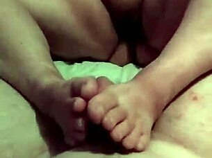 babe gets cumshot on toes in hardcore fetish play 😍