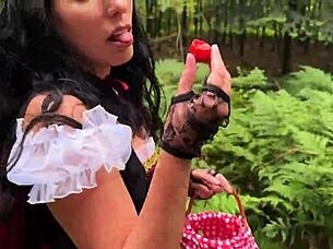 naughty linda del sol as red riding hood in forest tease