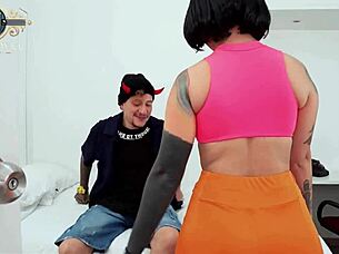 A Venezuelan mature woman connects intimately with her follower during a Halloween celebration, exploring assfucking and big ass play