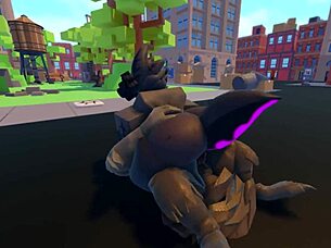 She casually sucked on that furry Roblox cock in a wild blowjob session.
