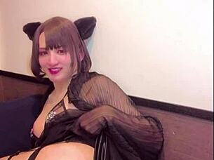 Sexy cat ear ladyboy masturbates live on cam