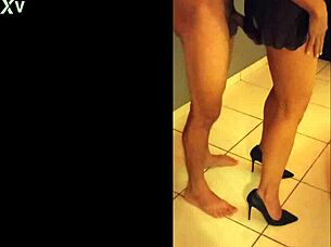 I, the office domina, start my first day as chaste nylon foot slave, caged in leggings.