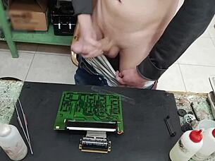 Unleashing monster cumshot explosion on client's fuck machine