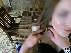 Brunette Sucks Cock for Facial Cumshot