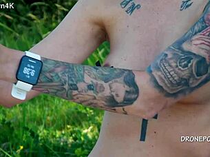 Blonde big tits babe strips nude public beach nudist tattoo