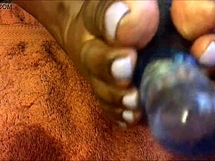 Massage my oily feet with glowing dildo