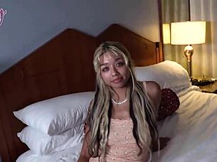busty teen squirts on parents' bed in lingerie?