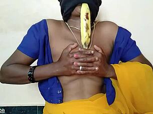 south indian auntie stuffs big banana in pussy