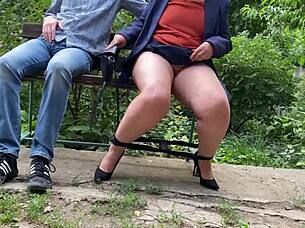 Damn, you won't believe this sexy mature flashing her wet tits in public park
