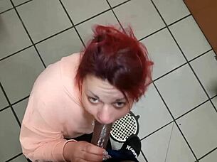 Redhead ginger titfucks big black cock at gloryhole