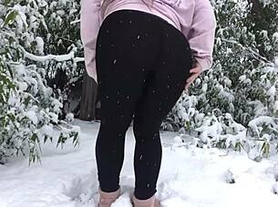 real couple fucks passionately out in the snowy outdoors