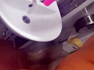 Hey, this horny amateur is sucking hard in the toilet on Mofozo com!