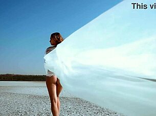 skinny ukrainian babe gloria sol strips naked on the beach