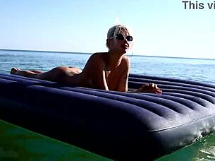 Blonde big tits babe strips nude public beach nudist tattoo