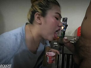 Hot Blowjob in Home Kitchen with Teasing Foreplay and Striptease Action Full Video on Sheer or Red