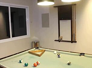 Fun group teaser at the pool with muscular friends and housewife in juicy setting