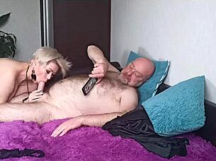 Chubby German housewife natural tits private threesome