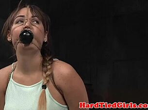 Master binds submissive for rough oral domination punishment