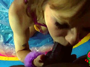 rebecca gags on monster bbc deepthroat puking sloppily by pool