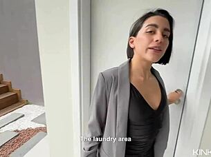 beautiful big ass latina agent bends over kitchen for cowgirl ride