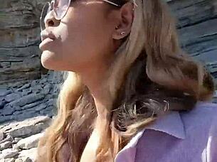 Blonde gets fingered and fucked in public exhibition