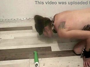 Bound french slave endures public toilet bdsm training