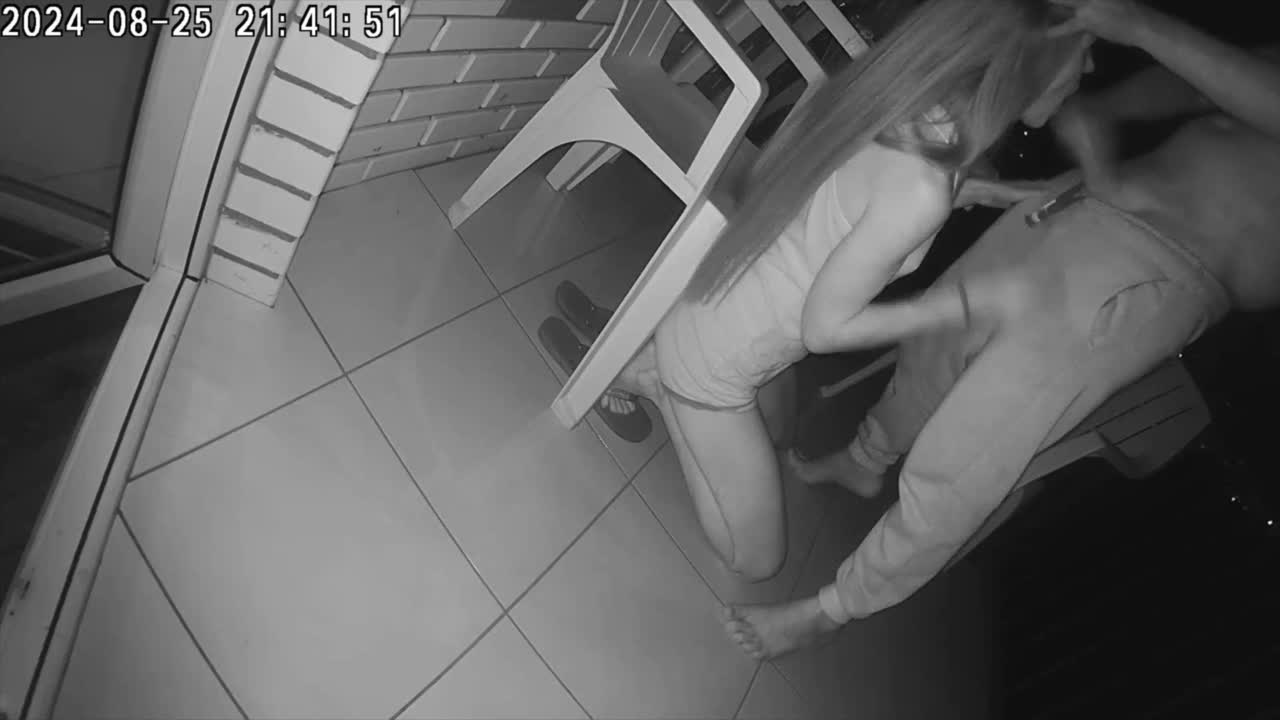 streetwalker performs oral service outdoors, spitting out and then continuing the act on the client