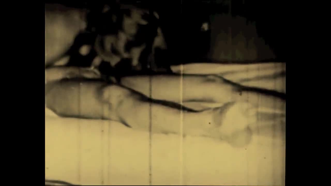 classic vintage scene shows hairy pussy getting pounded doggystyle in retro style