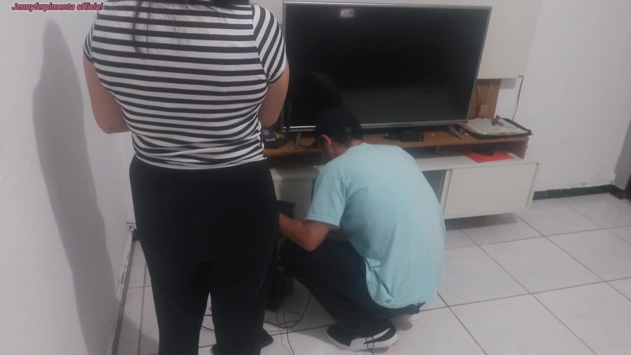 Housewife shows lingerie to technician for opinion