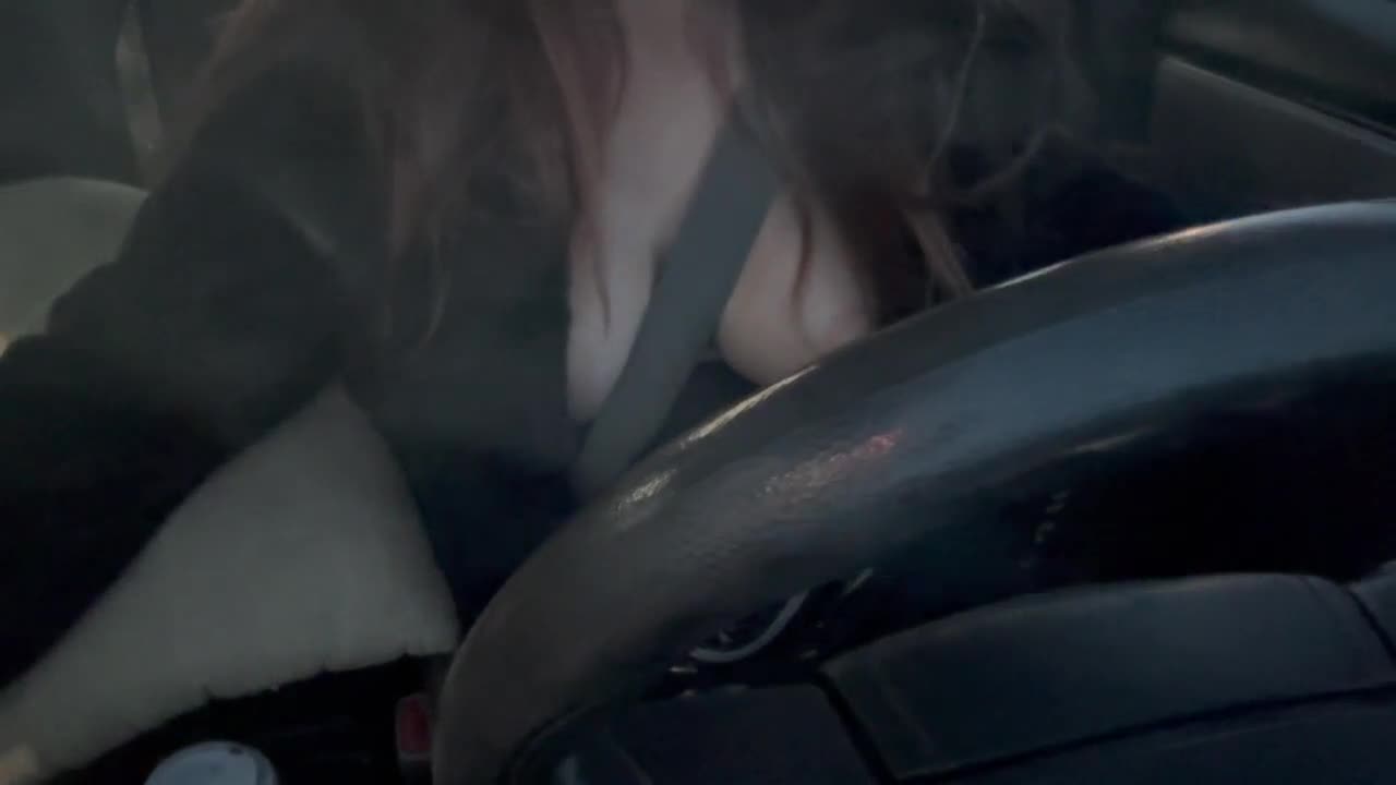 Artemisia Love flashes juicy big tits while driving outdoors